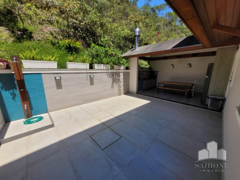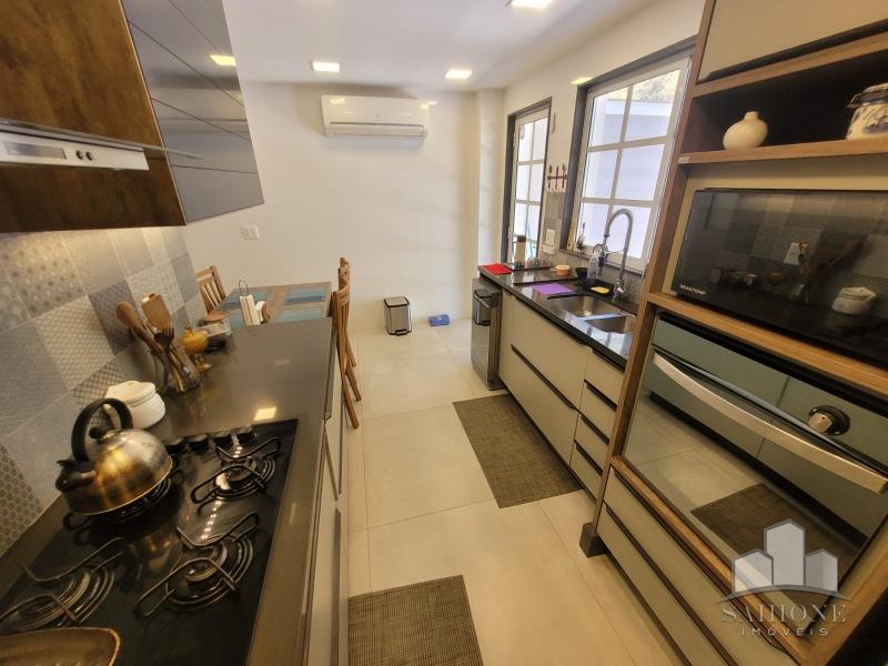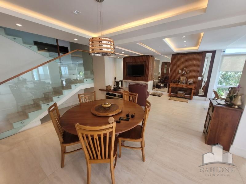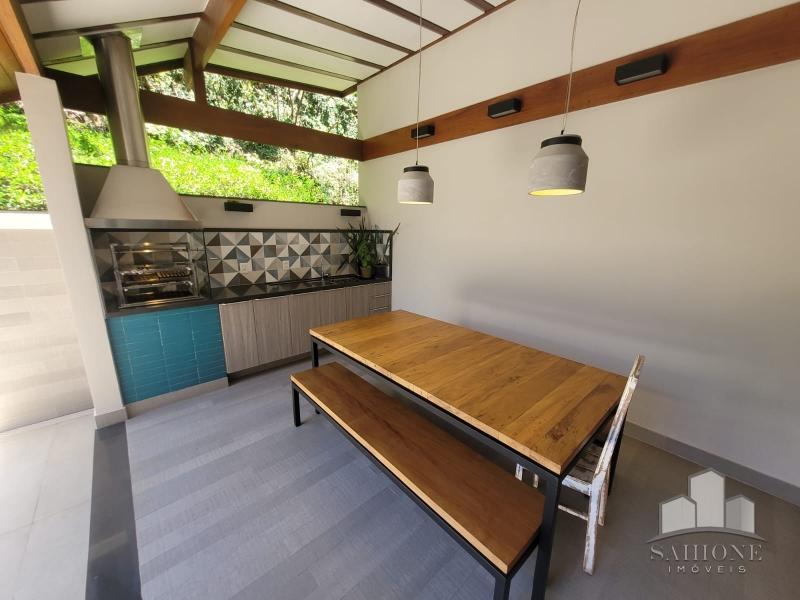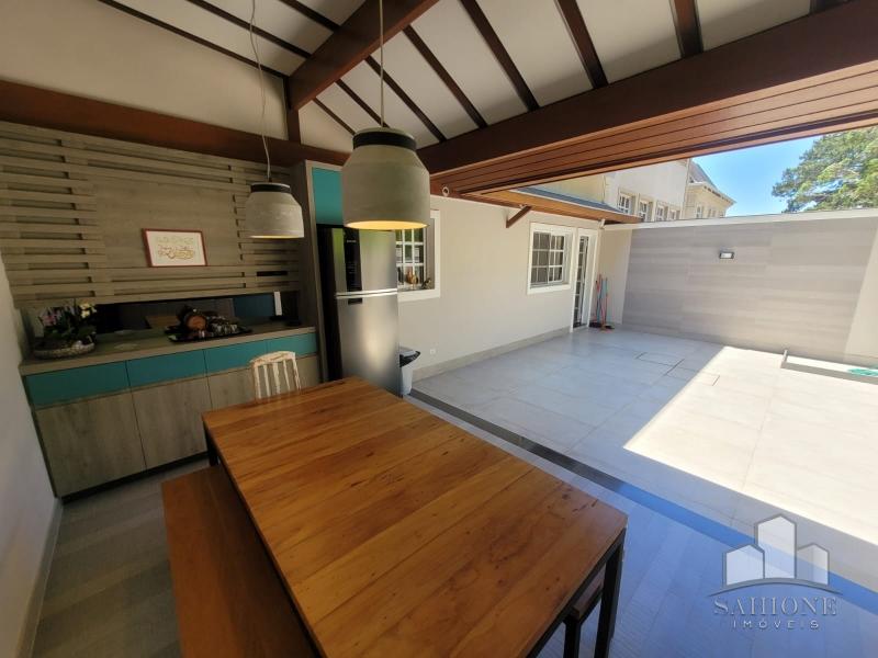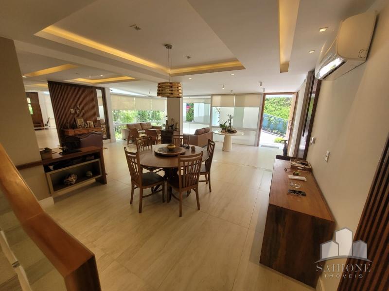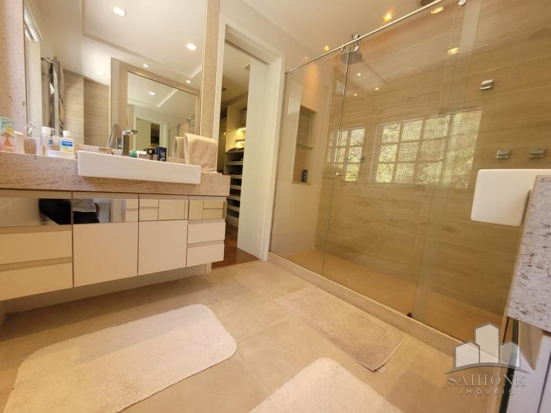 Constando no andar térreo: living, salão em três ambientes (TV, de estar com lareira e jantar) e lavabo, em um ambiente decorado com peças requintadas e muito bom gosto, harmônico, com uma arquitetura moderna e sofisticada. Cozinha e área de serviço planejadas com vários armários, adega e lavabo. Área gourmet com churrasqueira e chuveirão na área externa junto ao terraço, muito ensolarado.