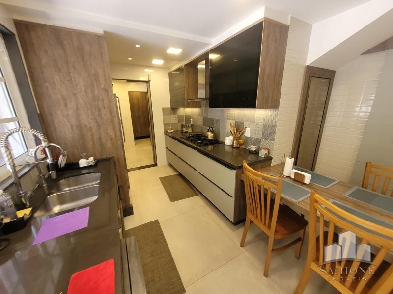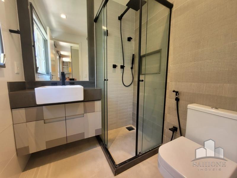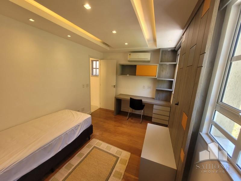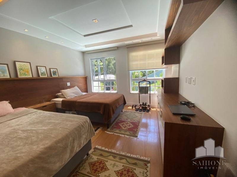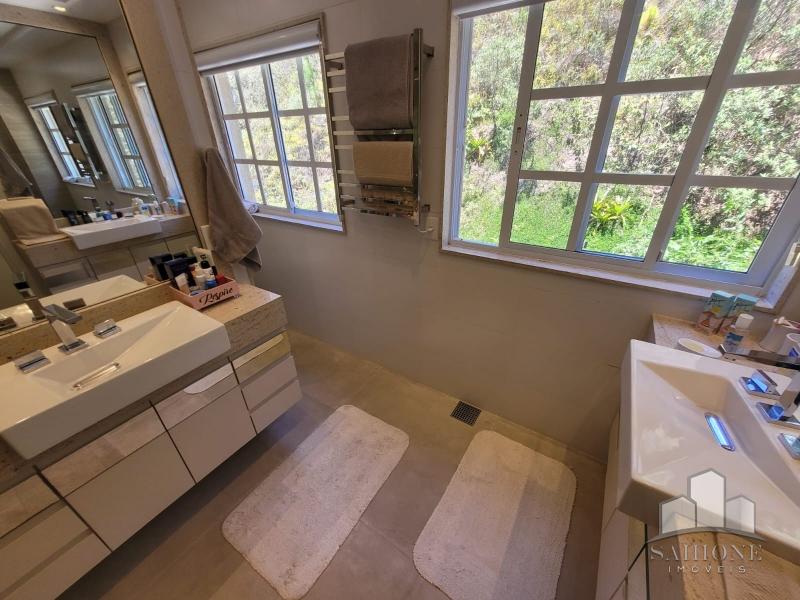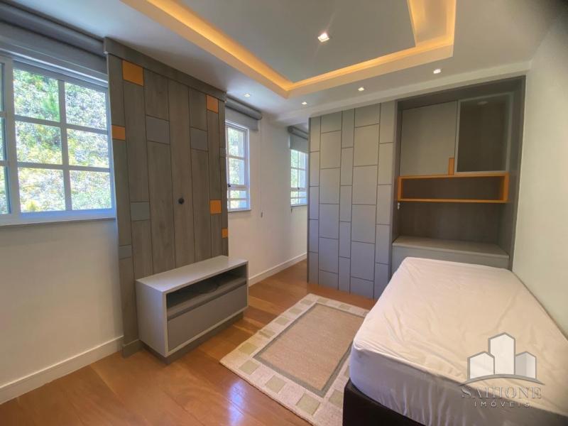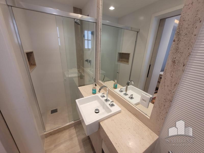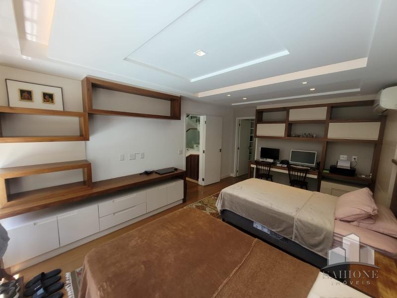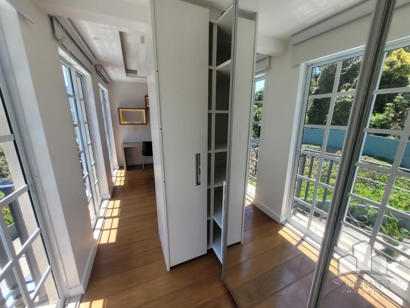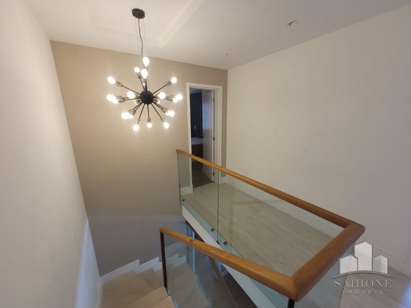 Segundo e terceiro pisos: com 4 suites, todas planejadas com armários, sendo a suíte Master com dois closets. O acabamento de primeiríssima, sendo revestimentos e pisos em porcelanato, rebaixo em gesso e iluminação moderna, assim como toda marcenaria, aquecimento à gás e solar. 3 vagas de garagem, sendo 2 cobertas.